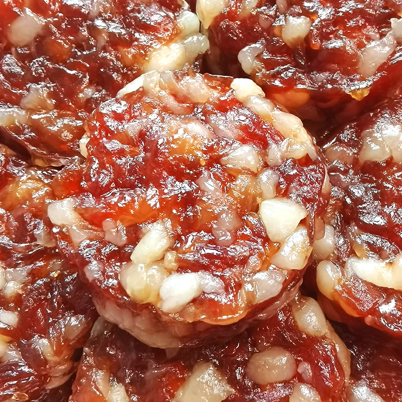 Saltad äggula och konserverad köttfärsbiff