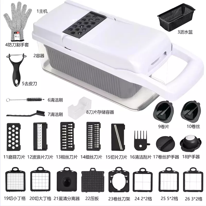 Vit kort-Lock 26-in-1 grönsakshackare