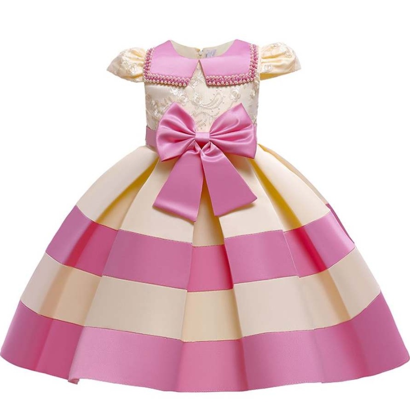 Baige Nya korta ärmar ränder Princess Klänning Girl Girl Christmas Party Dress L5282