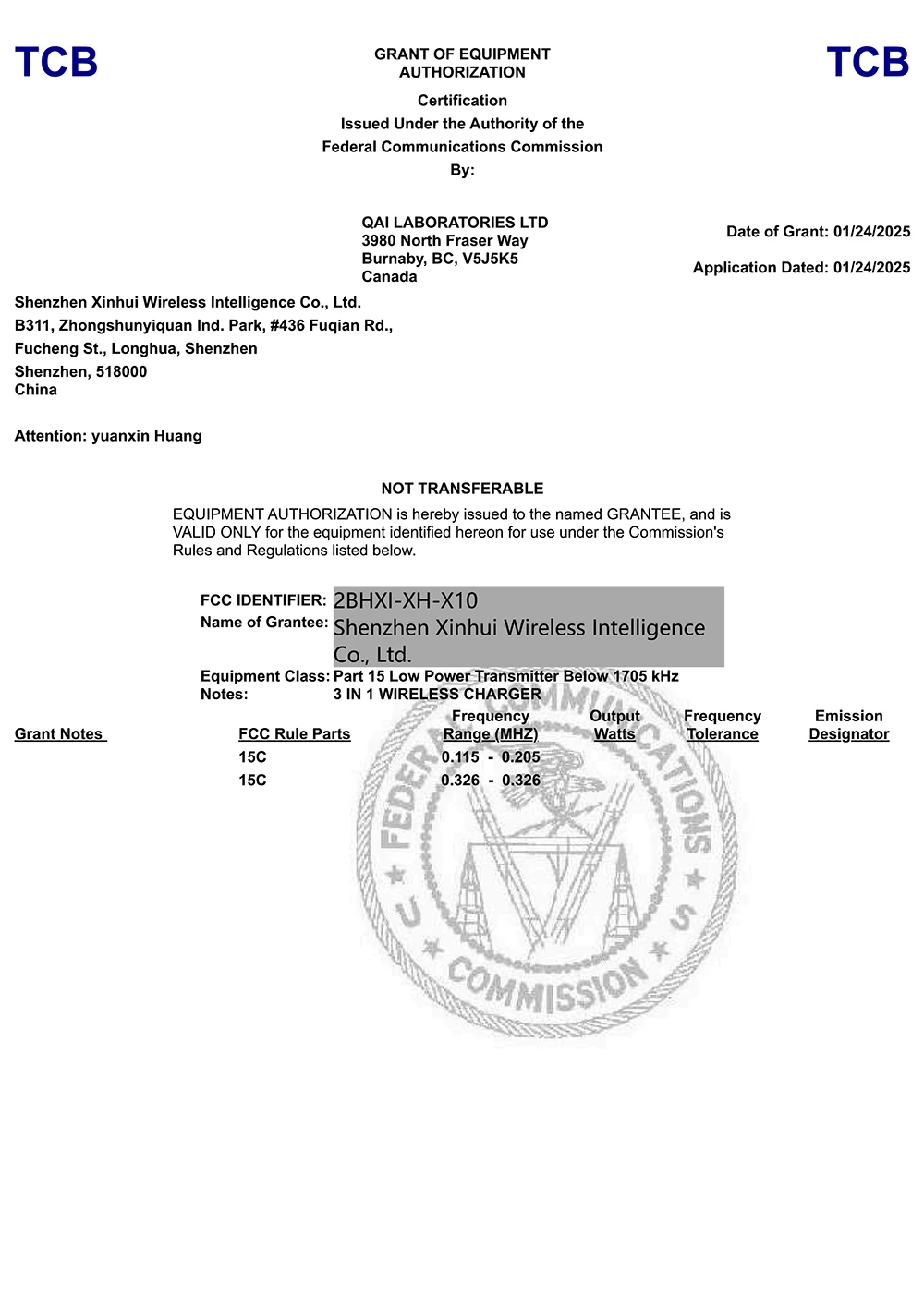 Xinhui Shenzhen Wireless Charger Co., Ltd.